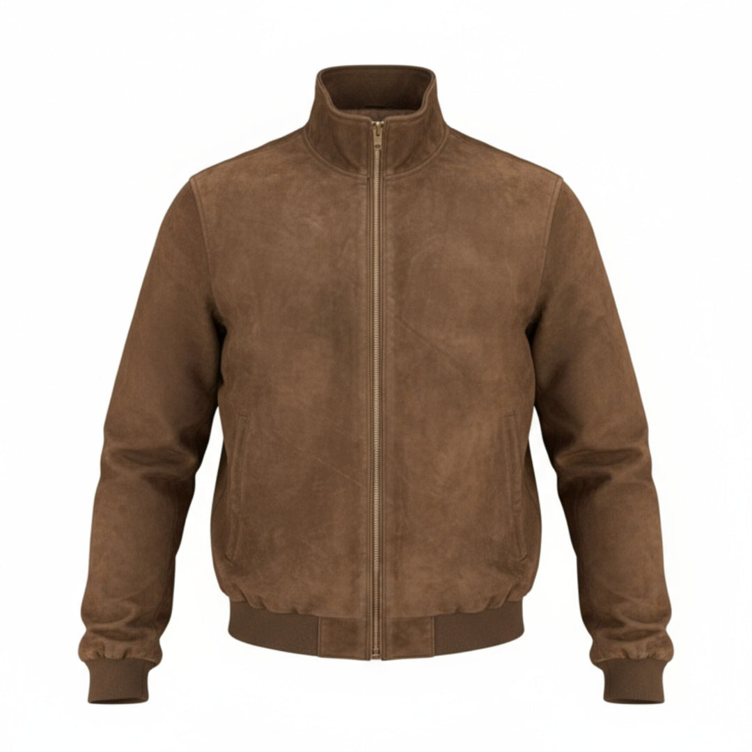 Dunkelbraune Echtleder-Jacke mit Reißverschluss