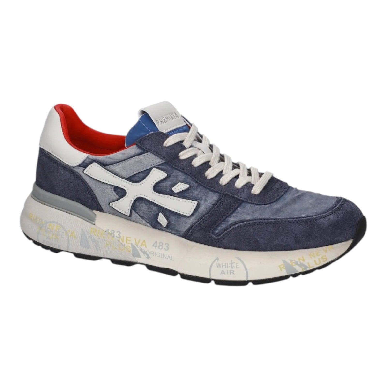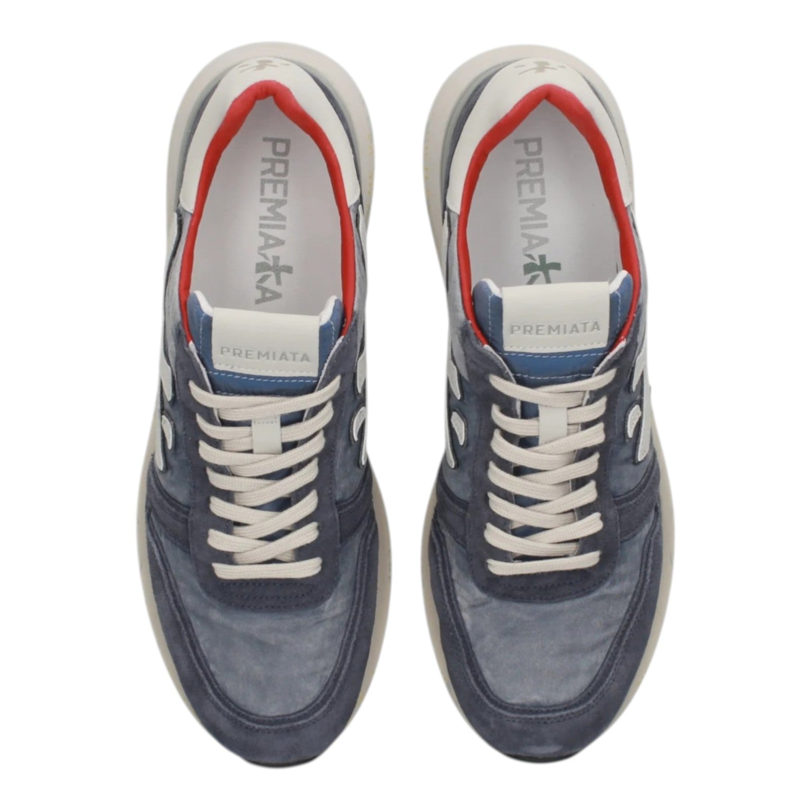 Ein Mix aus hochwertigen Materialien und Ledern. Der Schuh ist in einem Blauton für einen legeren Stil gefertigt. Die ikonische Silhouette wird durch das Premiata-Logo ergänzt.