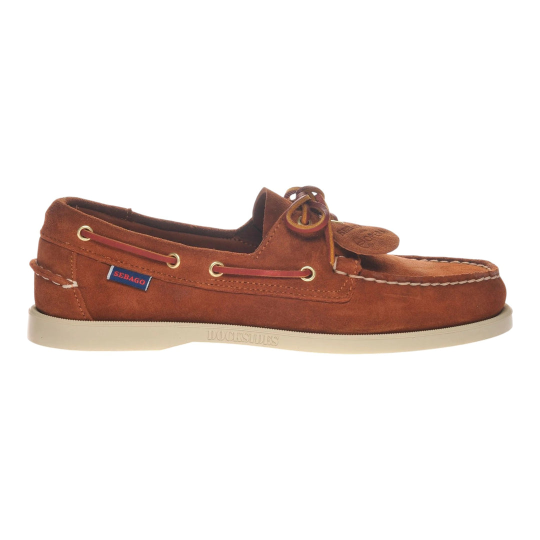 Sebago-Schuhe werden aus einer sorgfältig ausgewählten Palette hochwertiger Leder gefertigt.Vollnarbenlederbildet die Grundlage für die Dan- und Askook-Mokassins, die gebürstet werden, um lange zu halten und mit der Zeit immer besser zu werden.gehämmertes LederDakota-Leder wird heiß gegerbt und mit Ölen behandelt, die ihm eine natürlich glatte Textur verleihen, währendeingefettetes WildlederDie Sohle des Yansa ist dank spezieller Öle angenehm kühl und weich. Die Laufsohlen variieren je nach Einsatzzweck: behandeltes Leder beim Dan (Strapazierfähigkeit, Flexibilität, Wasserdichtigkeit), Gummistollen beim Askook (Traktion auf unebenem Gelände), zweilagiger Para-Gummi beim Dakota (Schutz vor Abrieb, Wasser und Säuren) und gestanztes EVA beim Yansa (Isolierung und Stoßdämpfung). Das Futter besteht in der Regel aus dünnem oder Vollnarbenleder, einige Modelle verfügen jedoch über ein ungefüttertes Obermaterial für saisonale Vielseitigkeit.