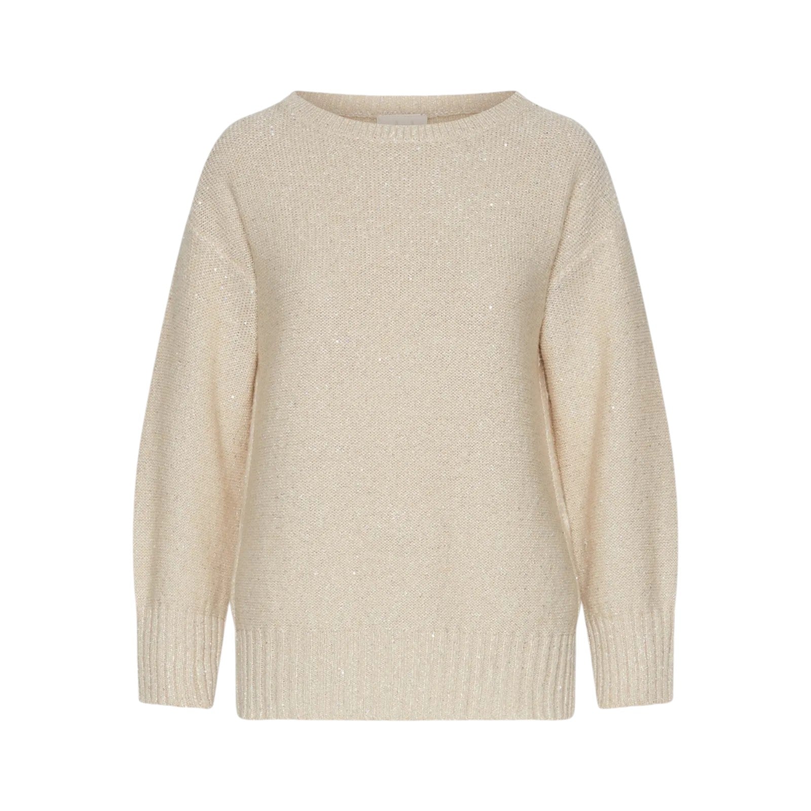 The softness of cashmere, the glamorous touch of sequins: a new sweater with clean lines, complemented by the original touch of side slits held in place by buttons.
