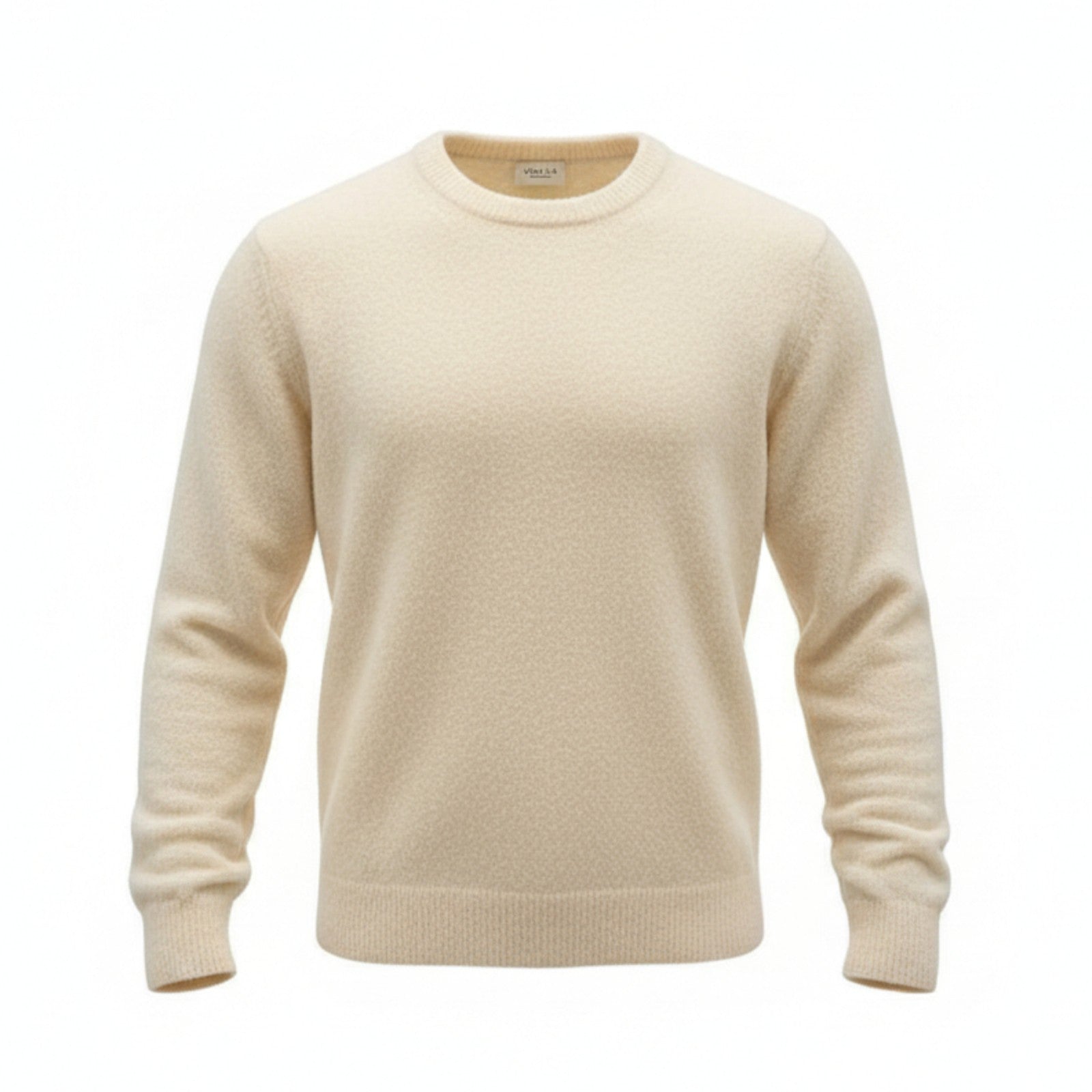 Rundhalsausschnitt aus weißer, ungebrauchter Wolle