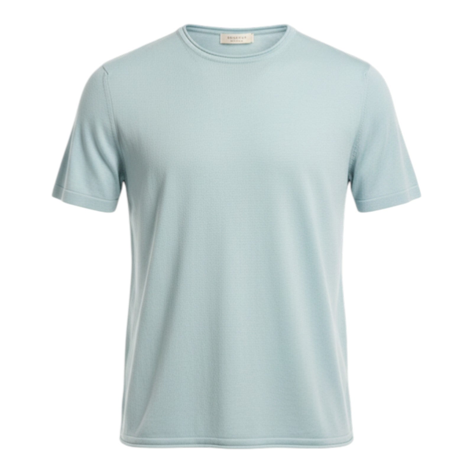Girocollo Manica Corta Cotone Pettinato Azzurro